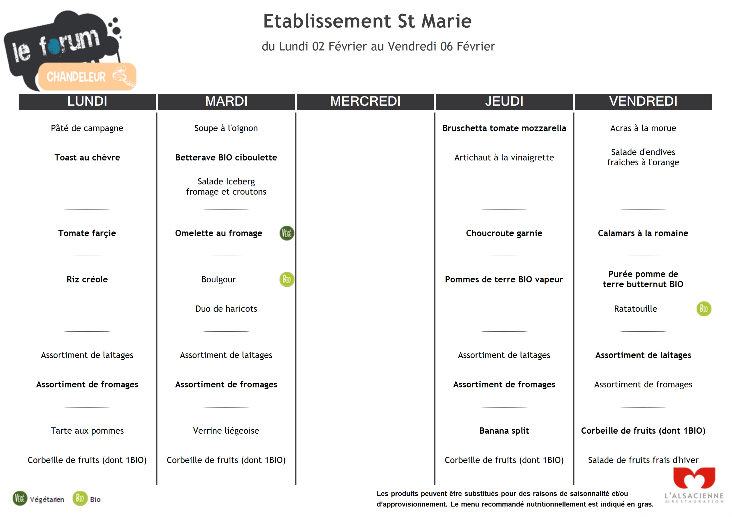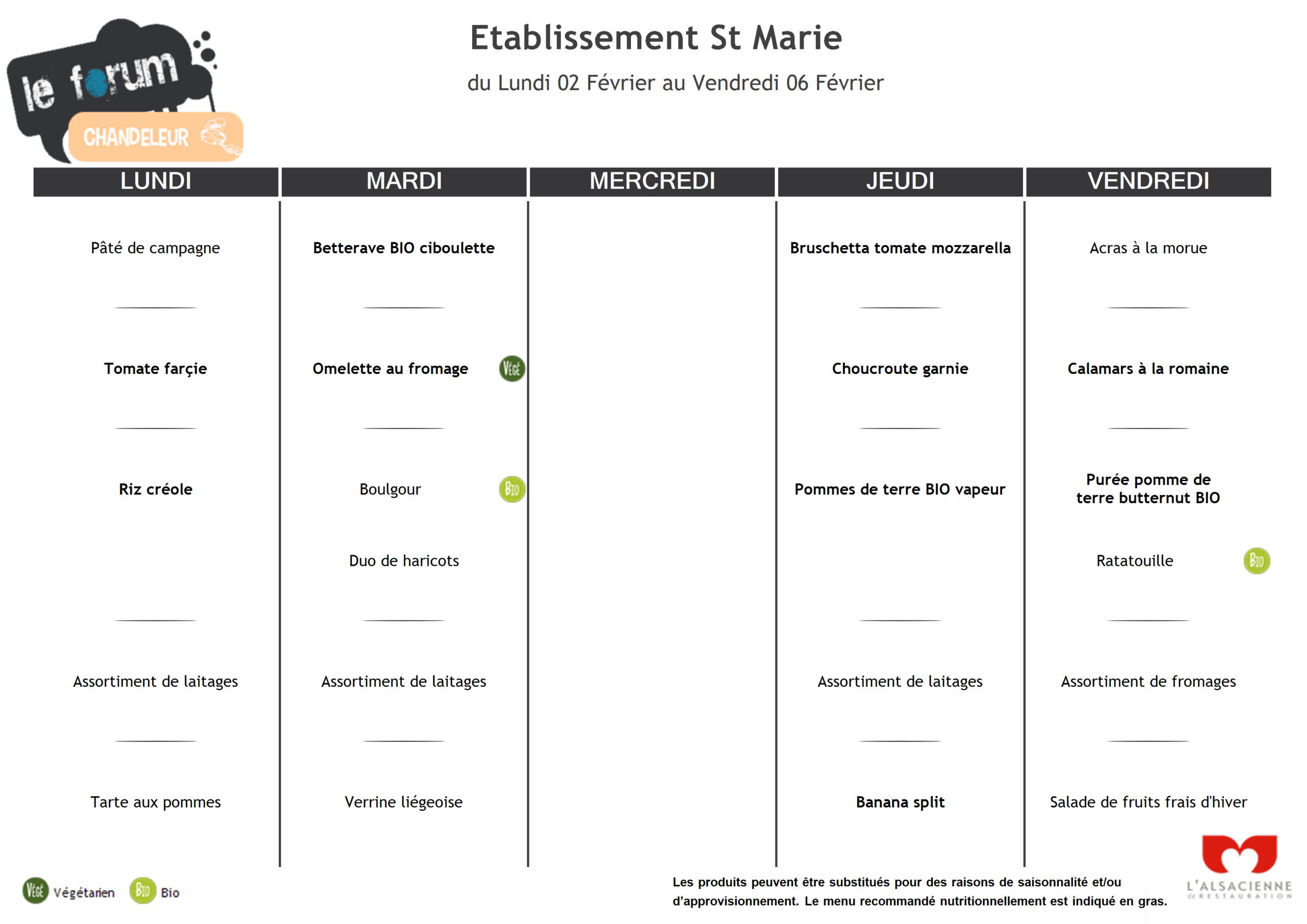 Menus du 02/02 au 06/02