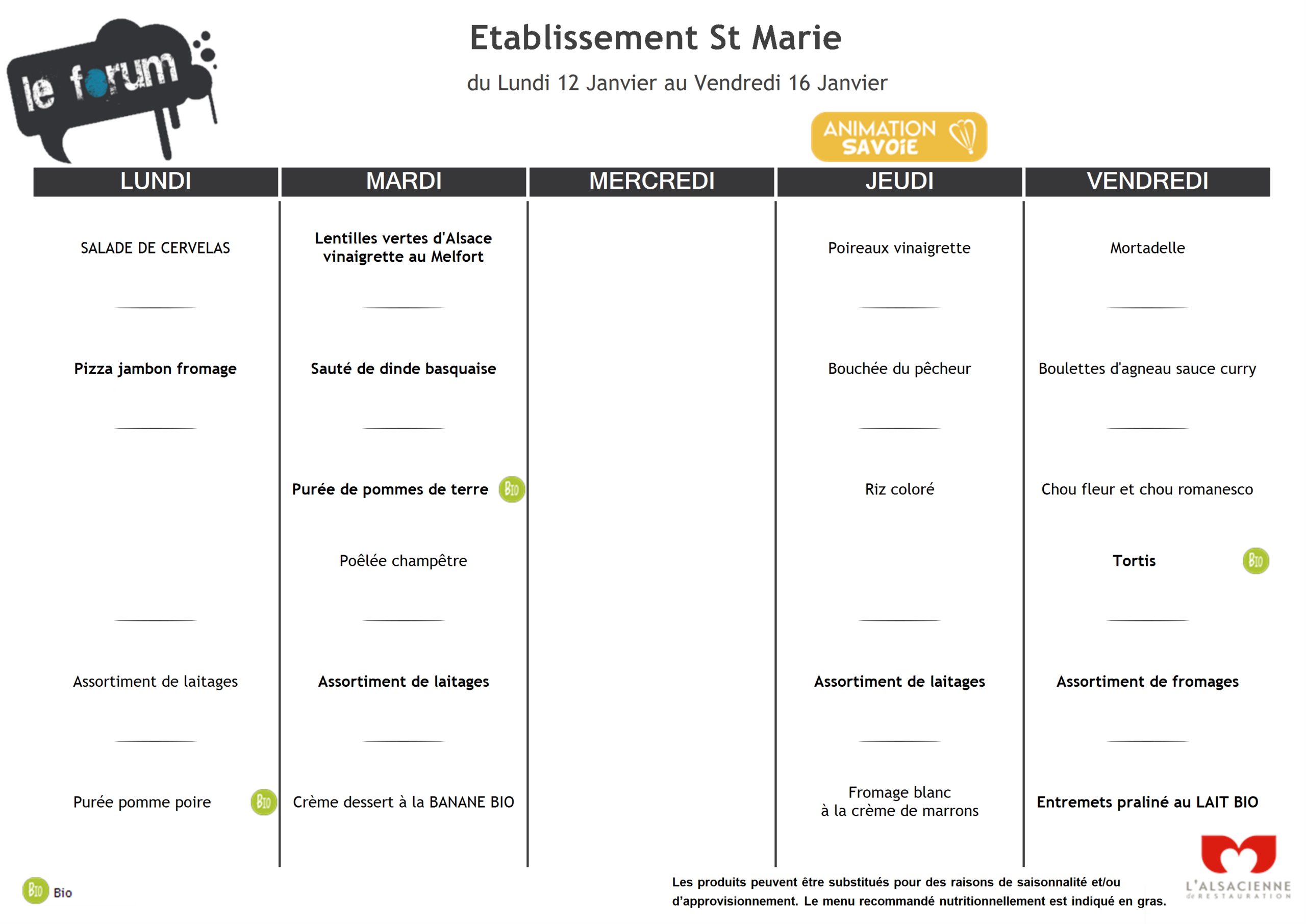 Menus du 12/01 au 16/01